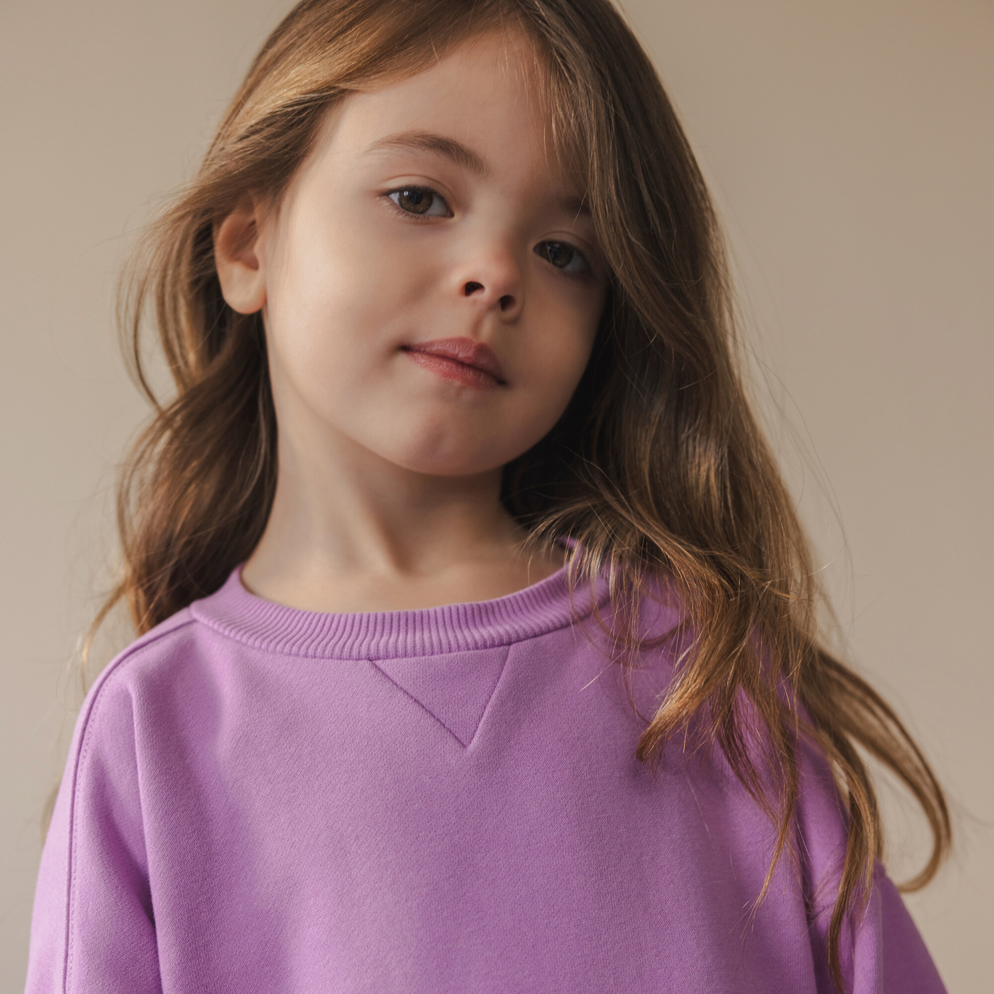 Made from a super soft chunky sweat fabric. The inside is lightly brushed but not completely fleeced: for a perfect combination of soft and breathable.