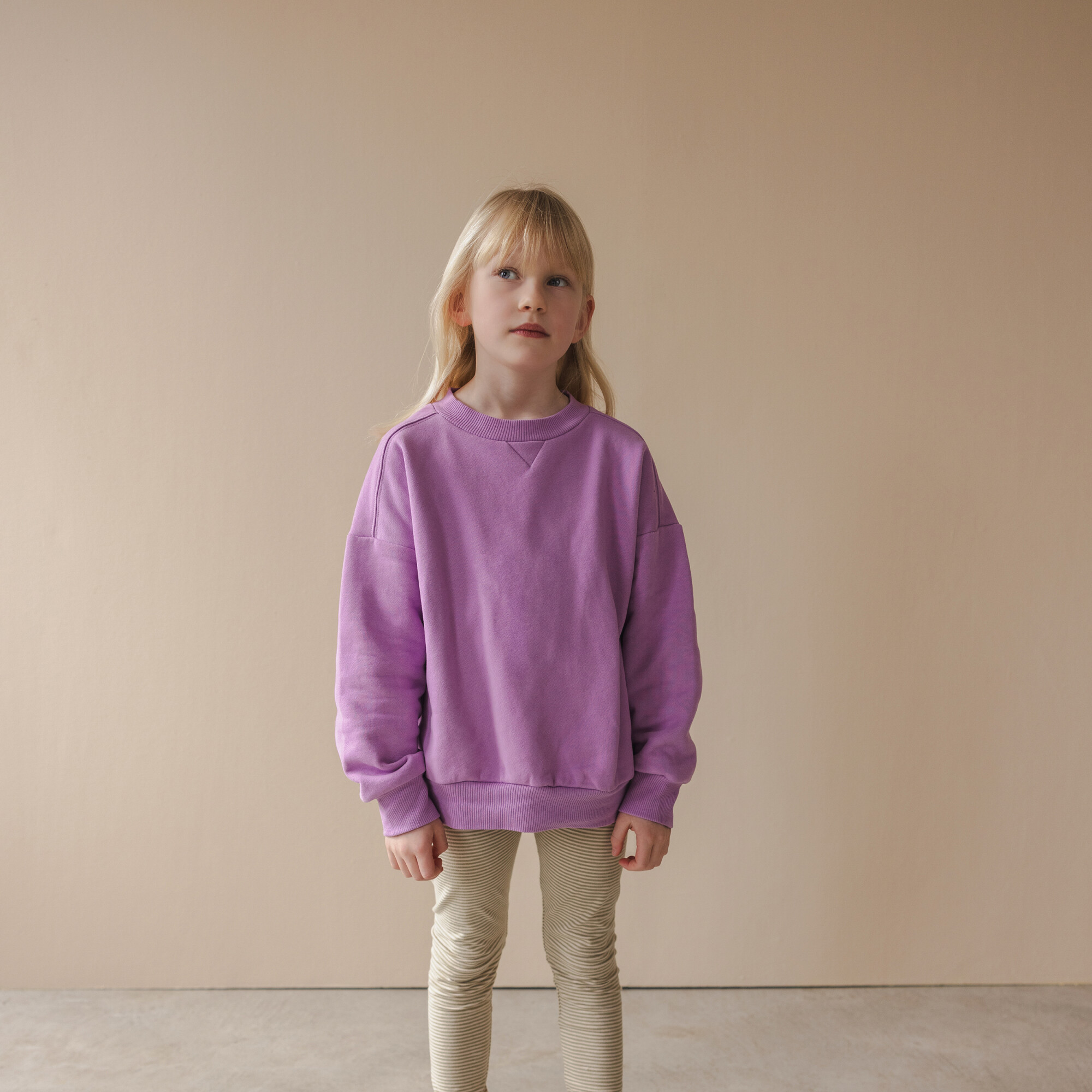 Made from the softest organic cotton jersey with a bit of comfortable stretch. The fabric has little stripes that go with almost anything. Easily styled with an oversized sweater or tee dress.