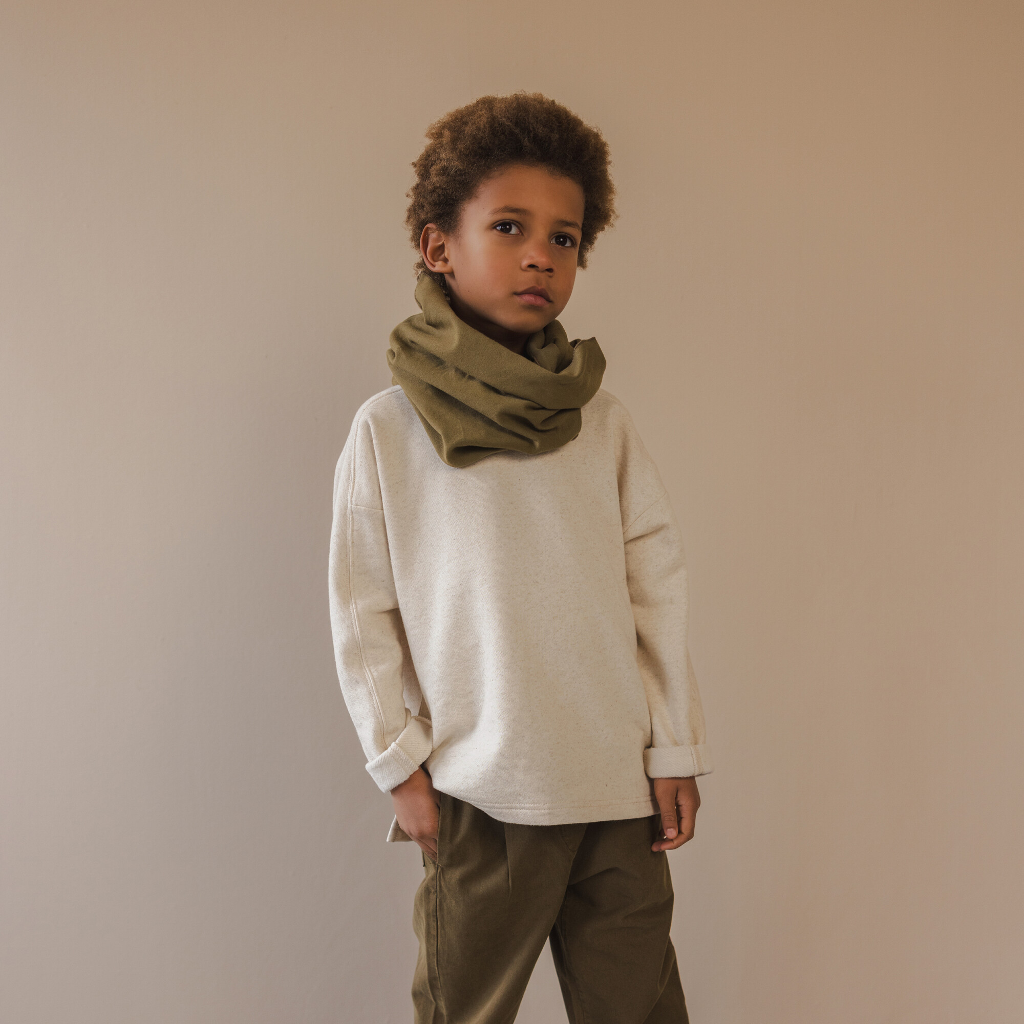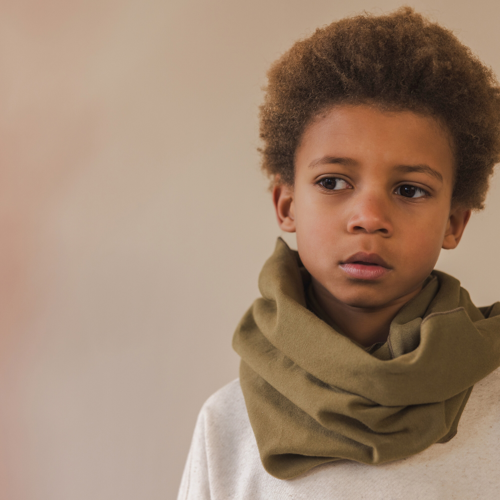 De Infinity sjaal is gemaakt van zacht biologisch katoen, en bestaat uit één stuk dat twee keer om de hals kan. Combineert perfect met de Beanie in dezelfde tint.
