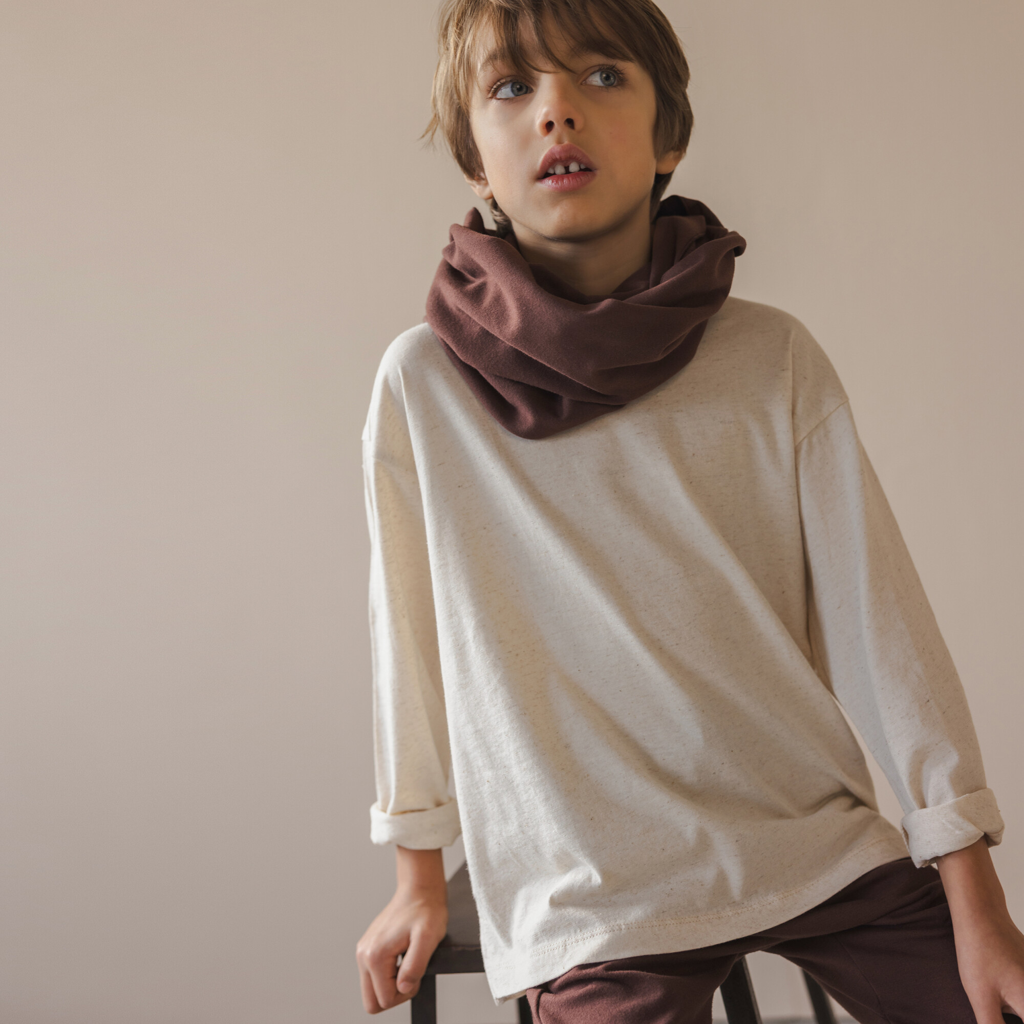 De Infinity sjaal is gemaakt van zacht biologisch katoen, en bestaat uit één stuk dat twee keer om de hals kan. Combineert perfect met de Beanie in dezelfde tint.