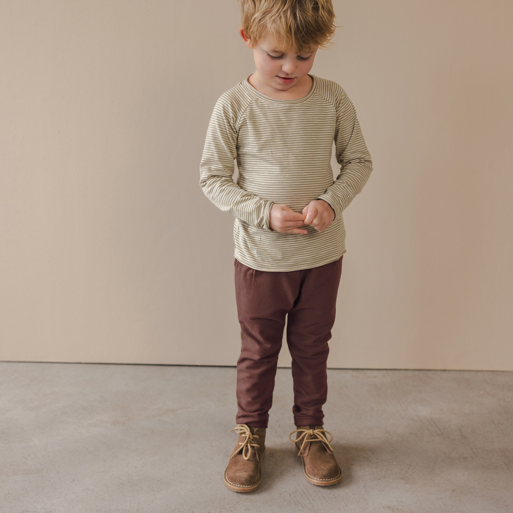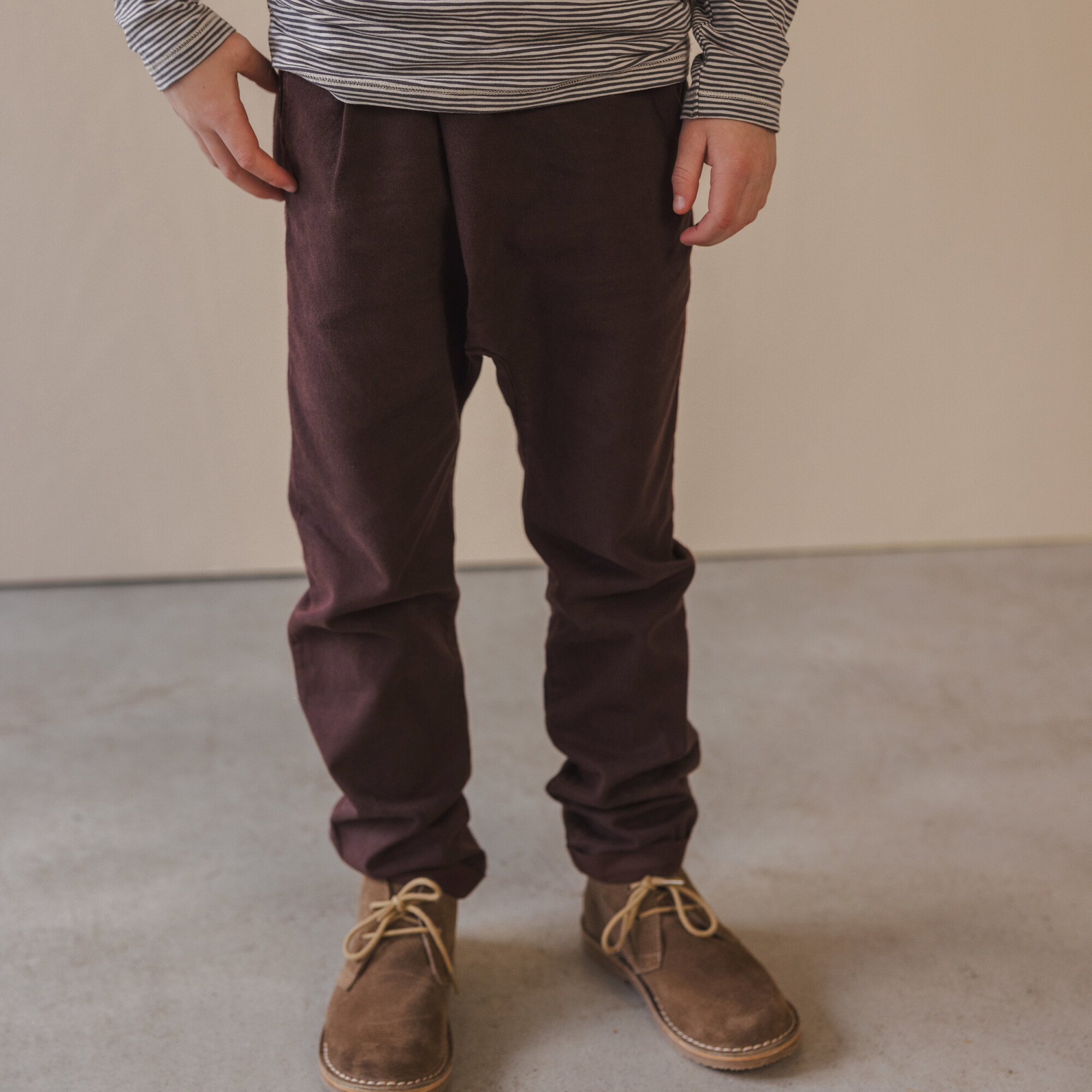Leren kinderschoenen, gemaakt van 100% suede, en een zool van rubber. De schoenen hebben ronde veters, en zijn afgewerkt zonder oogjes voor een minimalistische look. Stevig, super comfortabel en past bij elke outfit.