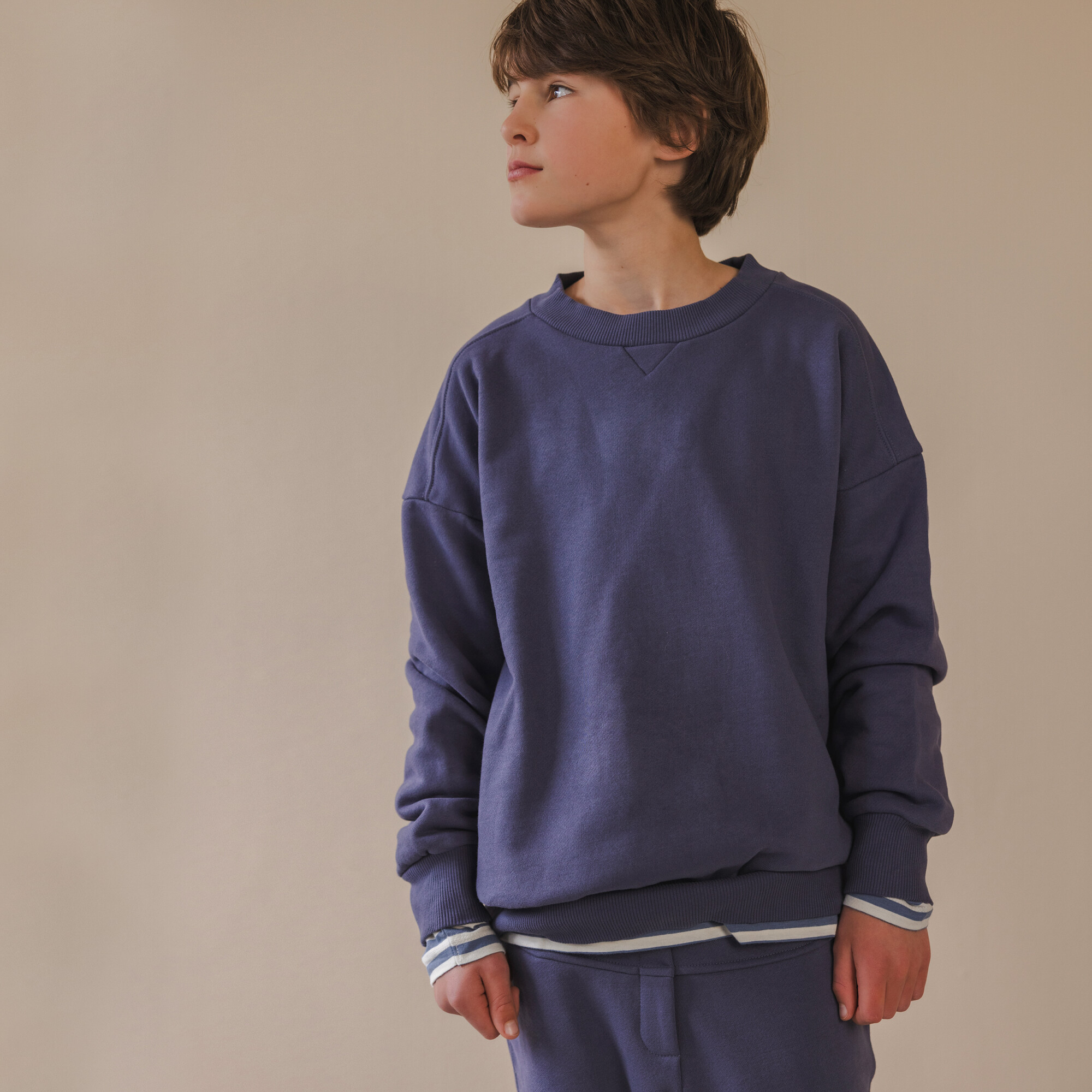 | Material: | 100% biologisch katoen, half-geborstelde diagonaal gebreide sweatstof (chunky sweat) |