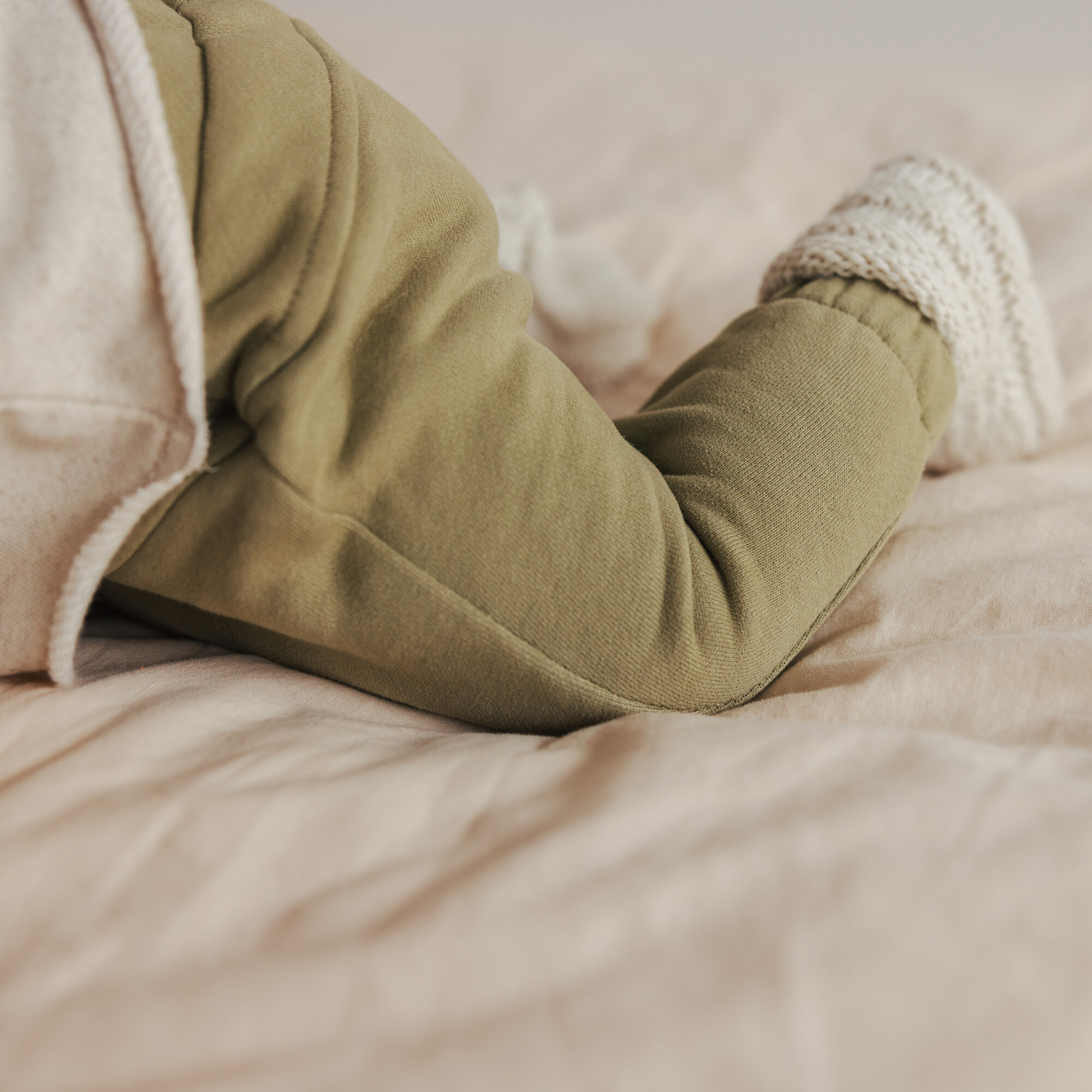 Dit fijne babybroekje is gemaakt van superzachte biologische 'chunky' sweat die licht is geborsteld aan de binnenzijde. Daardoor is de binnenkant heerlijk zacht, maar niet compleet fleece en dus toch lekker luchtig.