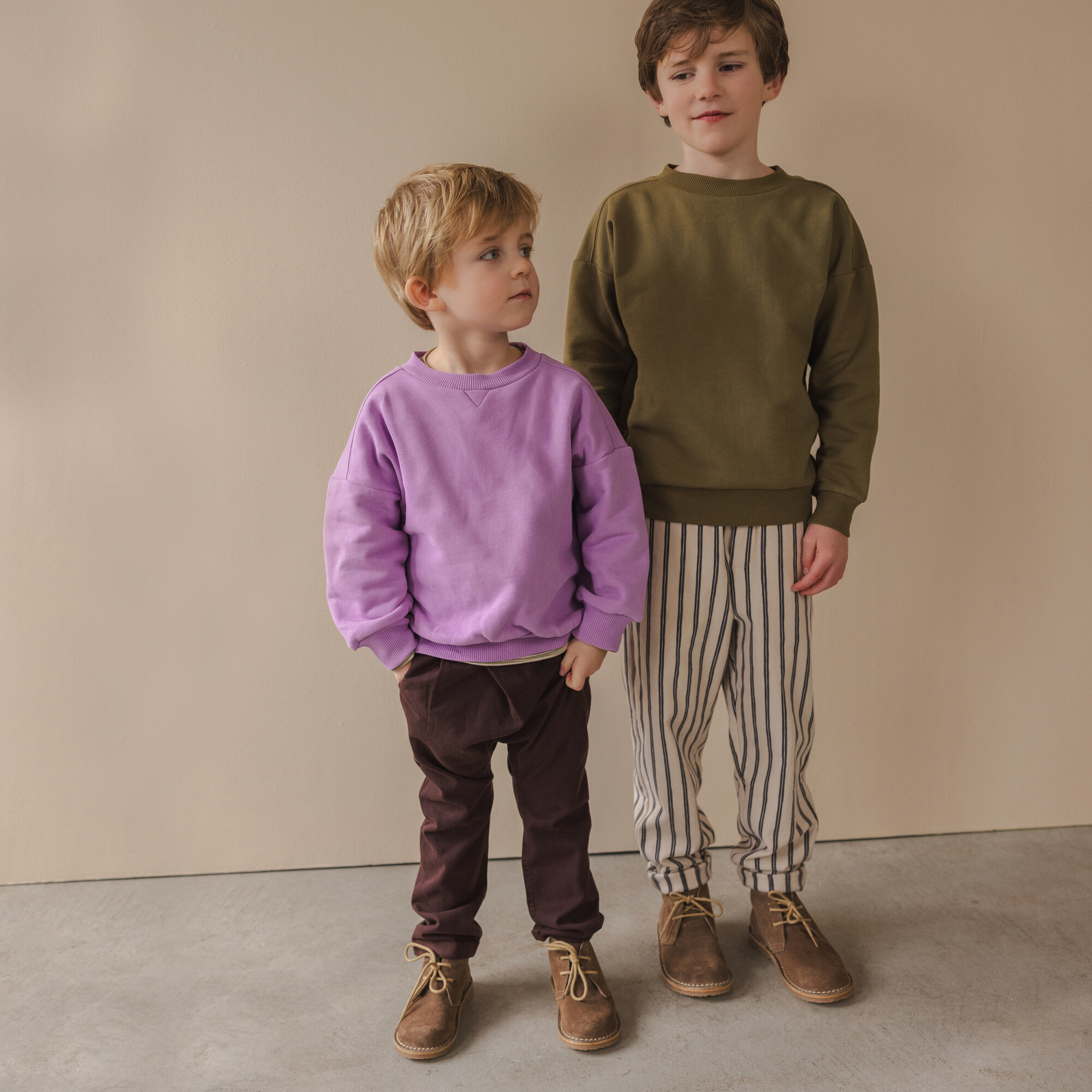 | Material: | 100% biologisch katoen, half-geborstelde diagonaal gebreide sweatstof (chunky sweat) |