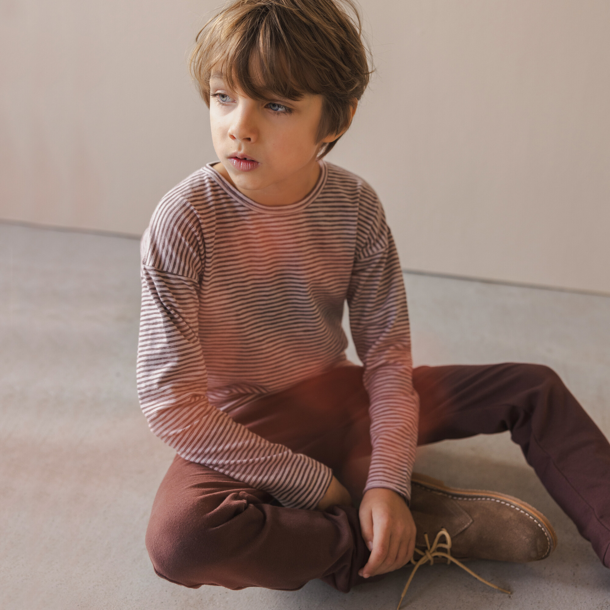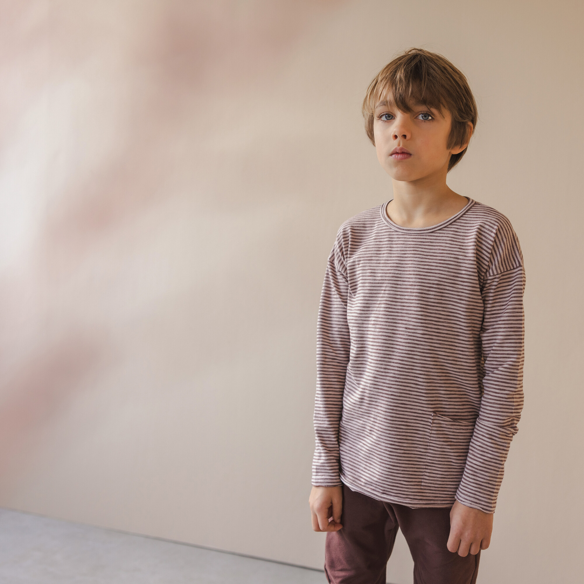 | Material: | 95% biologisch katoen / 5% elastaan slub jersey, yarn-dyed stripe |