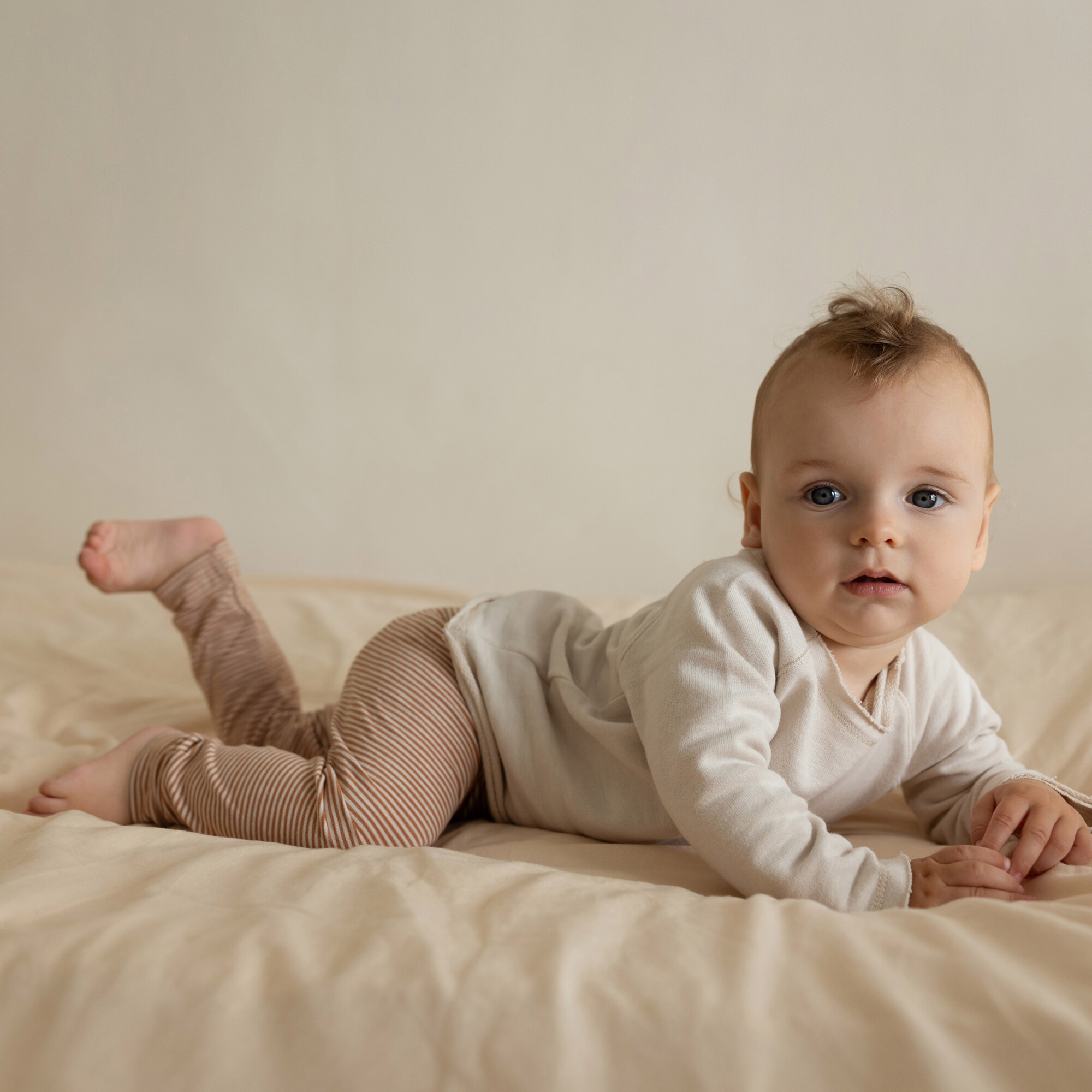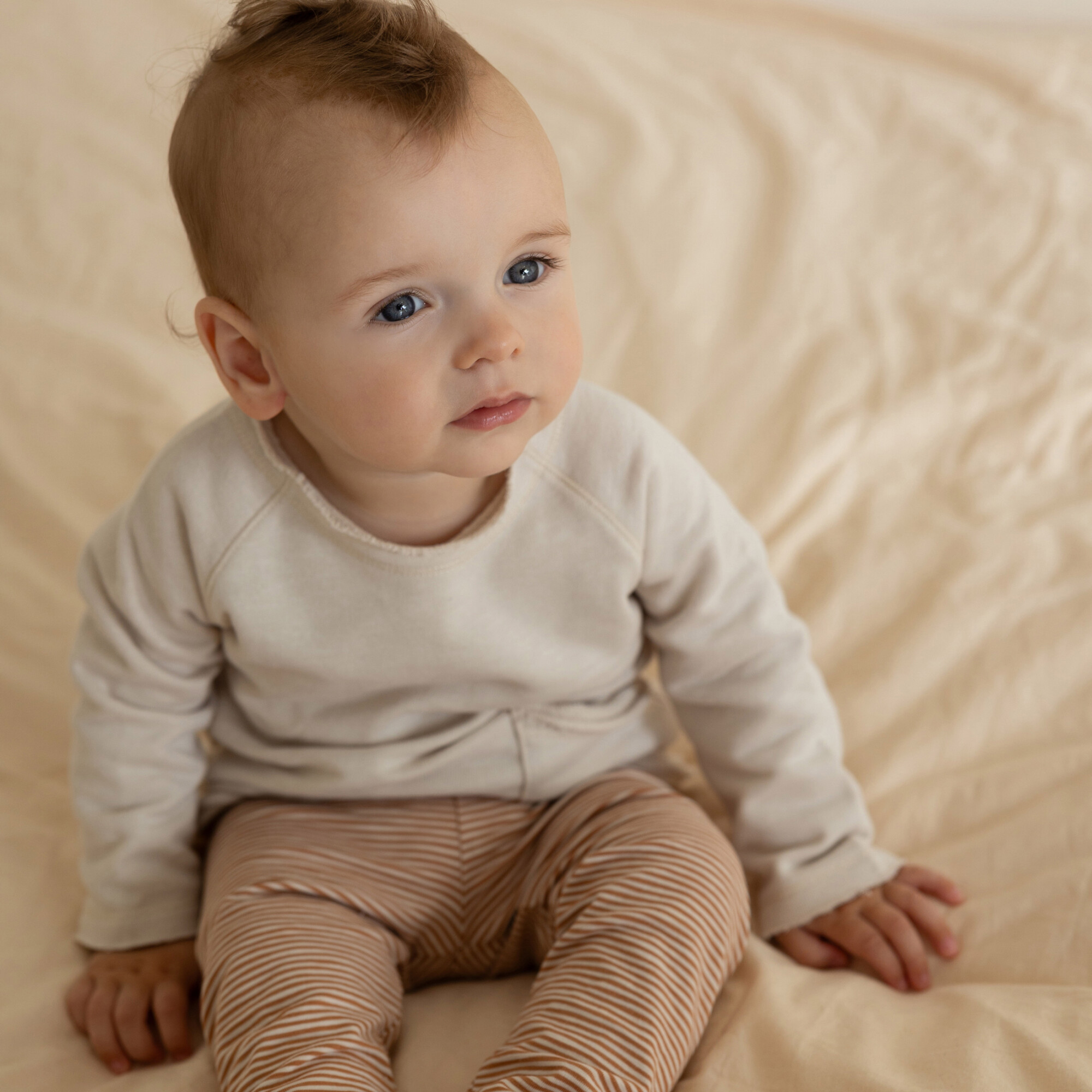 Leggings made from the softest striped organic cotton jersey with a bit of comfortable stretch. Easily styled with an oversized sweater, cardigan or dress. With an elasticated waistband for easy dressing and comfortable wearing.