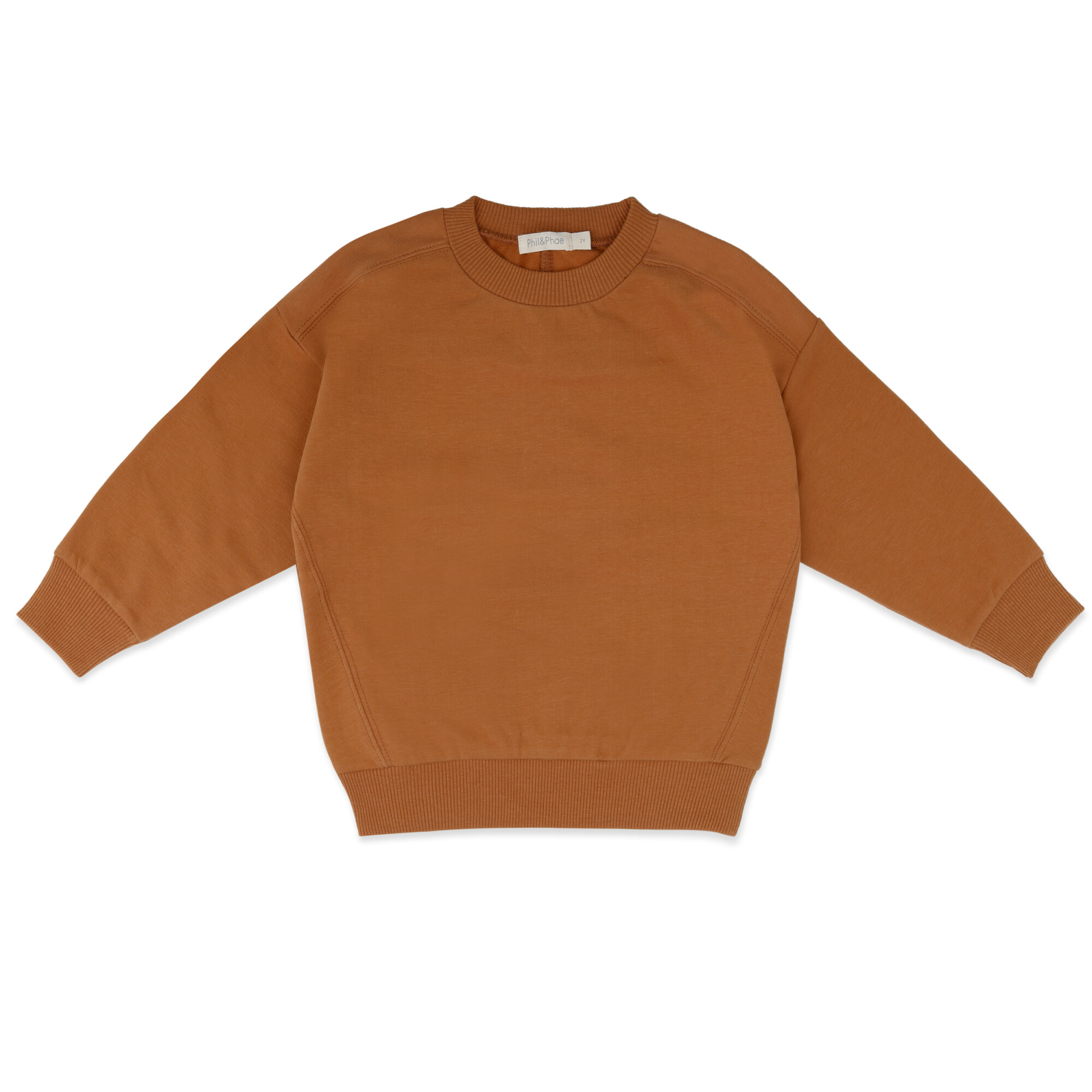 Sweater made from soft organic cotton, with dropped shoulderseams for an oversized look. For comfortable everyday wear. The sweater is designed with a round-neck and has ribbed cuffs. Also available as baby sweater.